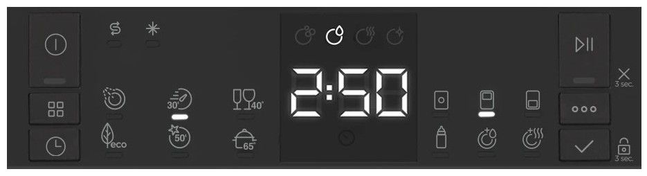 Tato nesmírně užitečná funkce vám přináší možnost odložení začátku mycího cyklu o 1 až 24 hodin. Jednoduše si zvolíte mycí program a přídavné funkce a poté už si jen nastavíte, za jak dlouho se má mycí cyklus spustit.