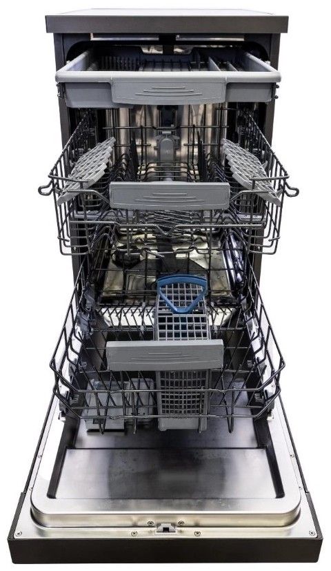 - Volně stojící myčka šířky 45 cm, tmavý nerez