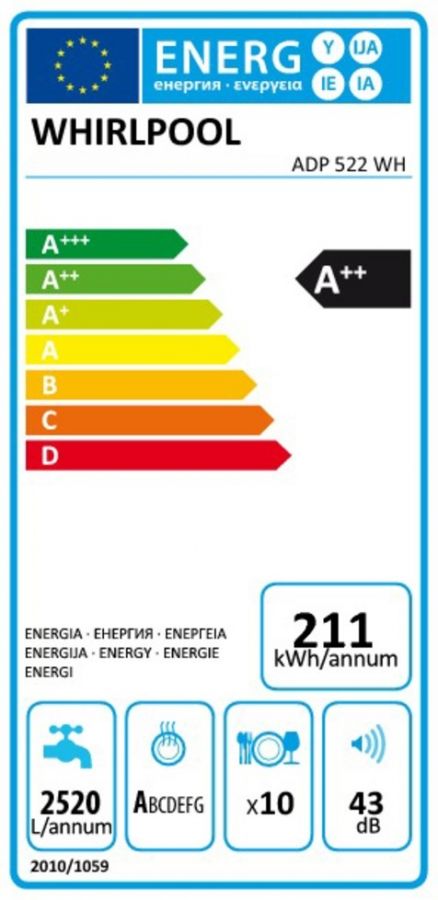 Volně stojící myčka nádobí s kapacitou 10 sad nádobí v bílém provedení disponuje senzorovou technologií 6. smysl a je zařazena do energetické třídy A++ .