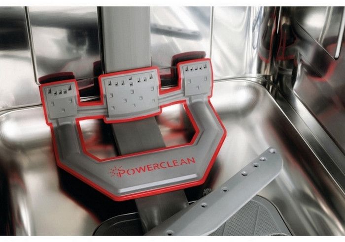 POWER CLEAN je patentovaná technologie Whirlpool pro mytí silně znečištěného nádobí ve vyhrazeném prostoru spodního koše vysokým tlakem vody proudícího ze zadních trysek. Využitím zóny PowerClean se zvýší kapacita spodního koše o 30%.