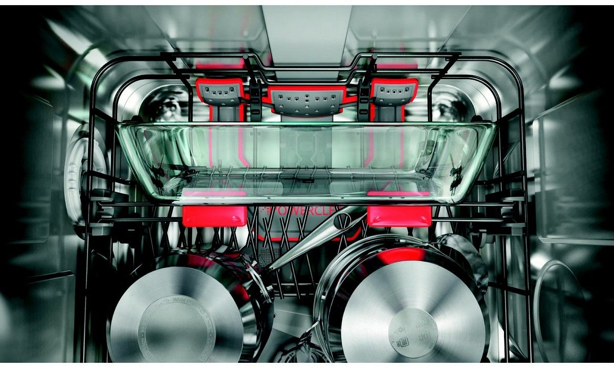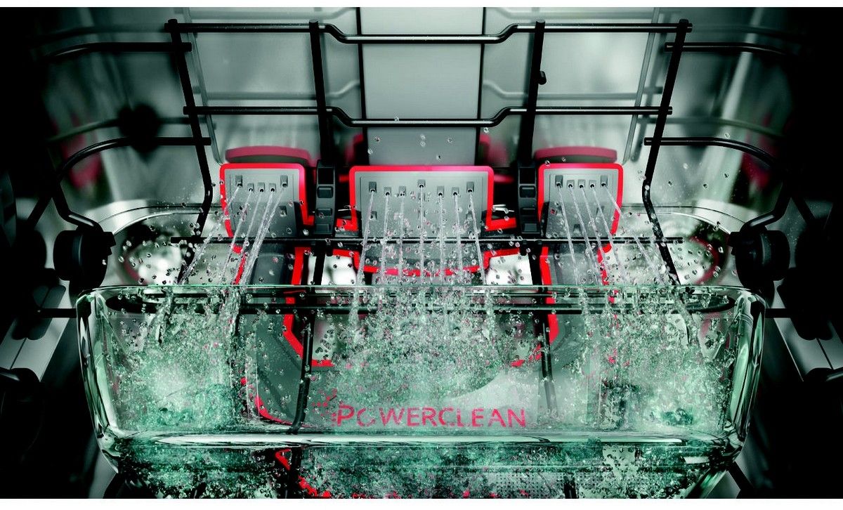 - POWER CLEAN je patentovaná technologie Whirlpool pro mytí silně znečištěného nádobí ve vyhrazeném prostoru spodního koše vysokým tlakem vody proudícího ze zadních trysek. Využitím zóny PowerClean se zvýší kapacita spodního koše o 30%.