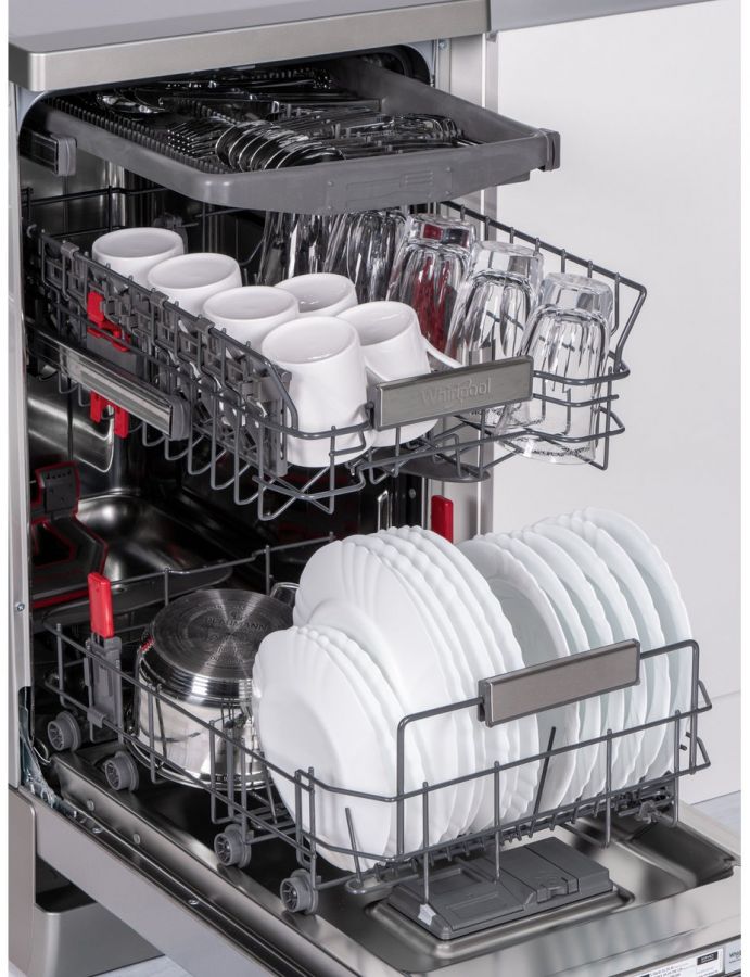 S myčkou nádobí Whirlpool WSFO3O34PFX se můžete těšit na neuvěřitelně čisté nádobí, ale i na samotné mytí. Moderní invertorový motor znamená nejen snížení vibrací a hlučnosti, ale i nižší výdaje za elektrickou energii.