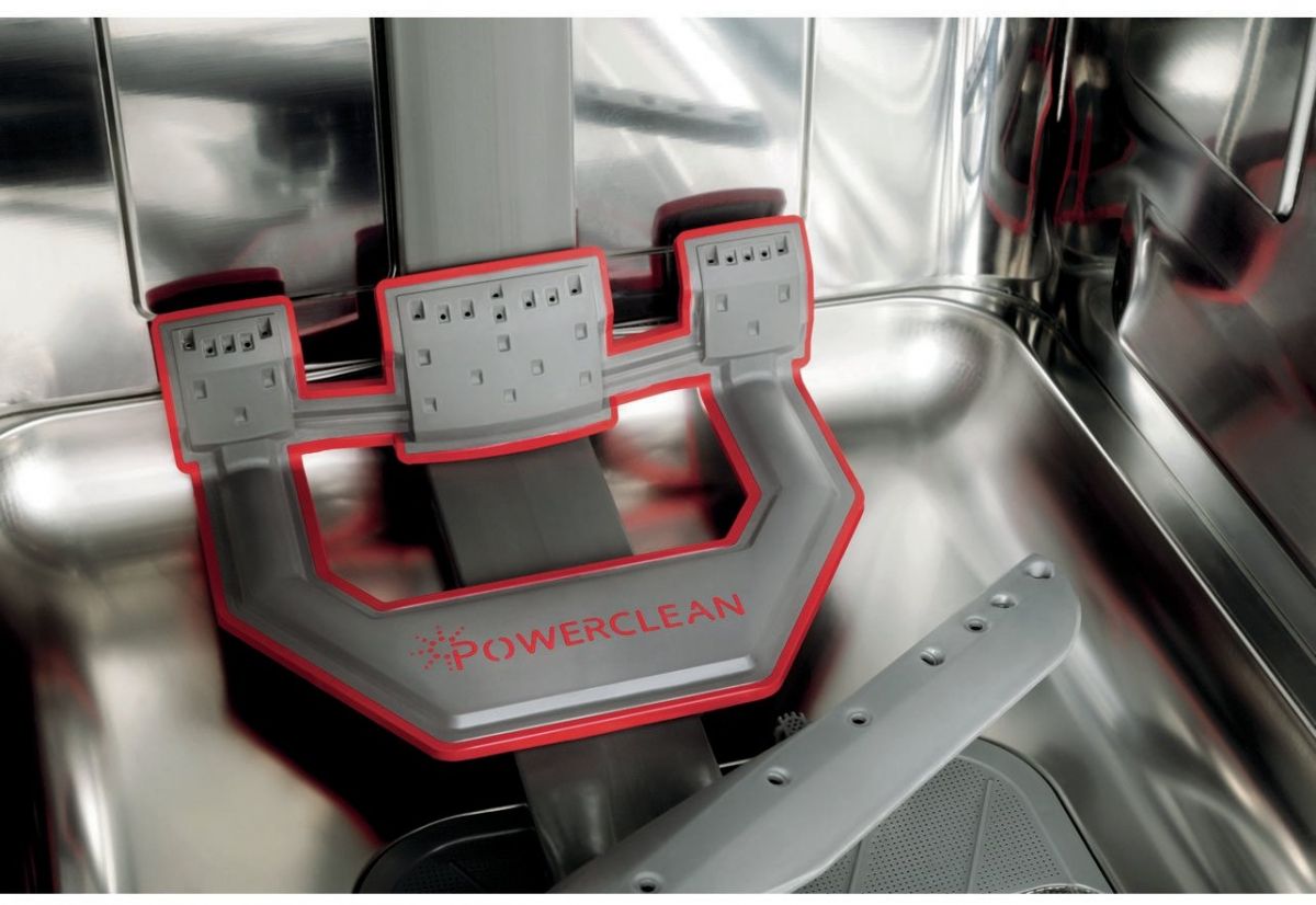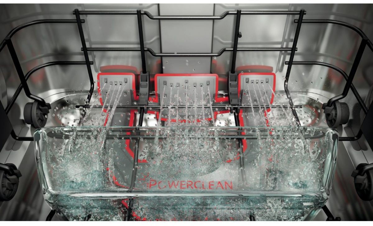 - POWER CLEAN je patentovaná technologie Whirlpool pro mytí silně znečištěného nádobí ve vyhrazeném prostoru spodního koše vysokým tlakem vody, proudícího ze zadních trysek. Využitím zóny PowerClean se zvýší kapacita spodního koše o 30%.