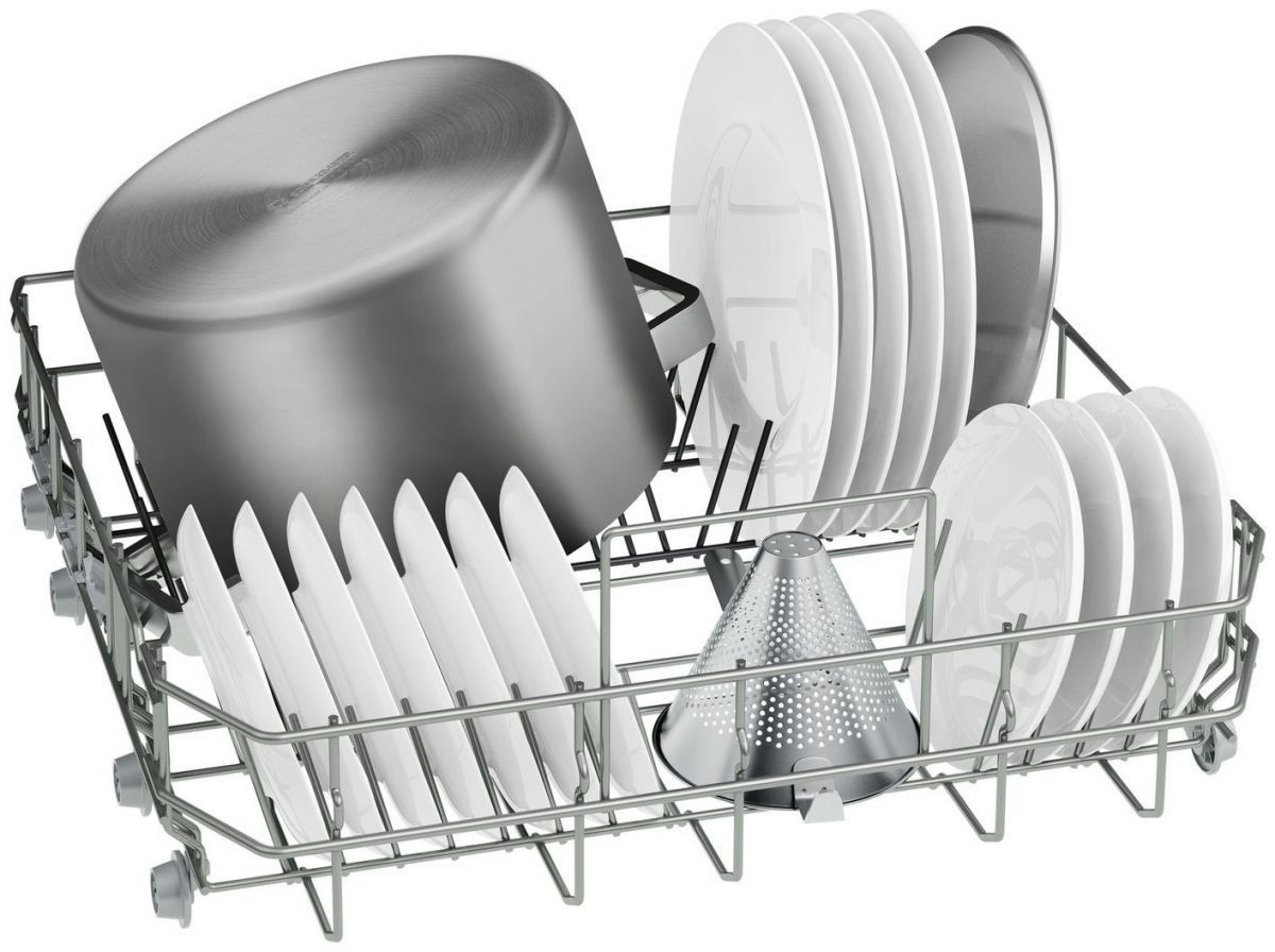 - Výškově nastavitelný horní koš: nabízí extra místo, zvláště pro vysoké nádobí.