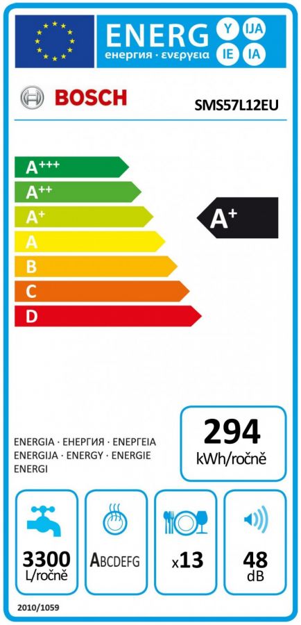 - Spotřeba vody v programu eco 50 °C: 3300 litrů/rok, na základě 280 standardních mycích cyklů. Skutečná spotřeba vody závisí na způsobu používání spotřebiče.