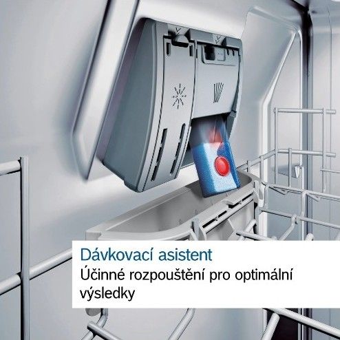 - Seznam programů: Eco 50 °C, Auto 45-65 °C, Intenzivní 70 °C, krátký, tichý, Oblíbený