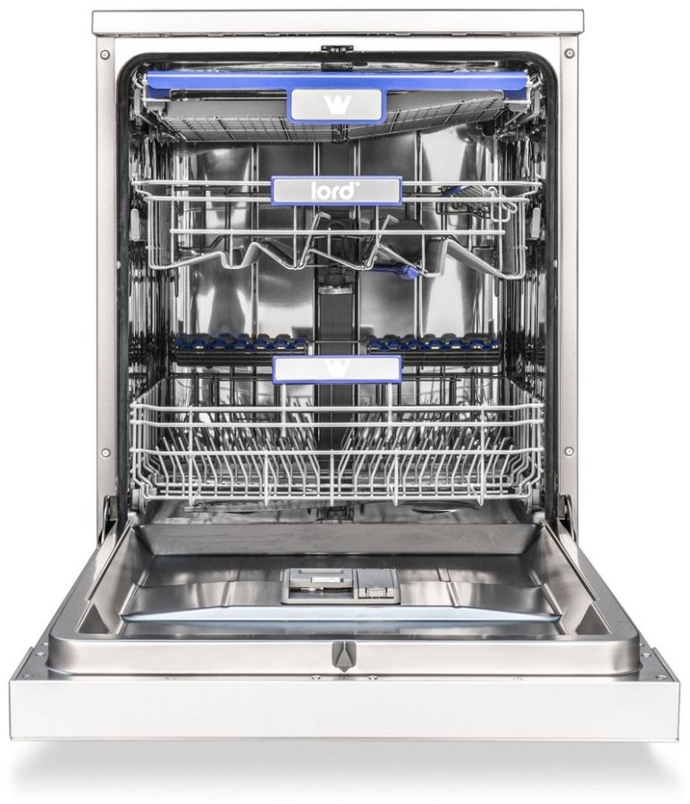 Myčka LORD D7 je navržena s důrazem na využití každého centimetru vnitřního prostoru. Nabízí 3 úrovně pro vkládání nádobí – spodní a horní koš a samostatnou zásuvku na příbory. Díky tomu se každý kus nádobí umyje rovnoměrně a důkladně. Horní koš je výškově nastavitelný i při plném naložení, což umožňuje přizpůsobení spodního prostoru pro vyšší hrnce či talíře.