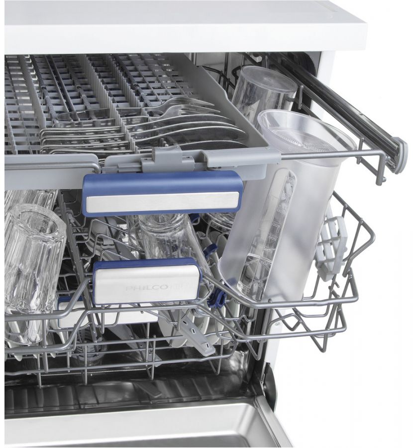 Myčka Philco PDI 1468 BT, v energetické třídě B s Turbo sušením, v šířce 60 cm s BLDC invertorovým motorem s 10letou zárukou, 8-mi programy a automatickým otevřením dveří po skončení programu iOpen, je určena pro mytí až 14 sad nádobí.