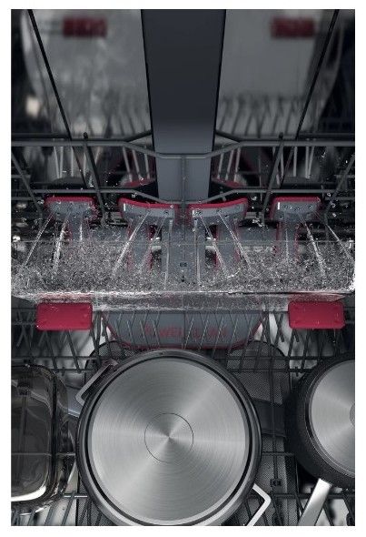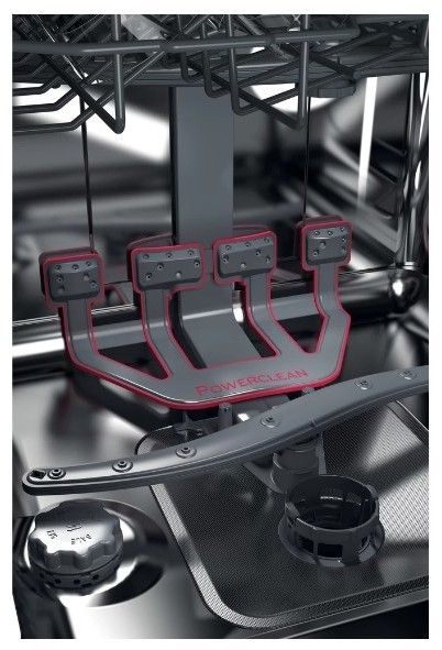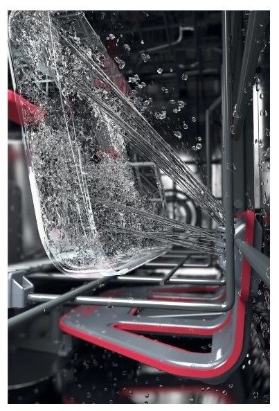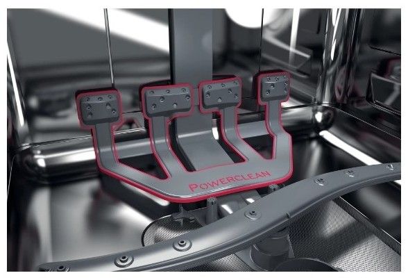 Výkonné vodní trysky v zadní části myčky zajišťují nejlepší výsledky mytí i při nejsilnějším znečištění. Inteligentní senzory detekují úroveň znečištění a podle toho upravují tlak vody.