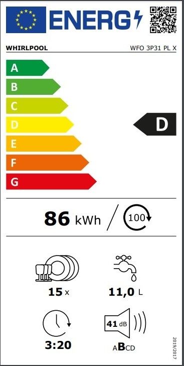 S energetickou třídou D vám tato myčka Whirlpool umožní využívat skvělý výkon i optimální spotřebu energie.