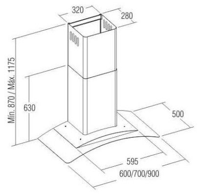 Min. výška nad plynovou deskou: 750 mm