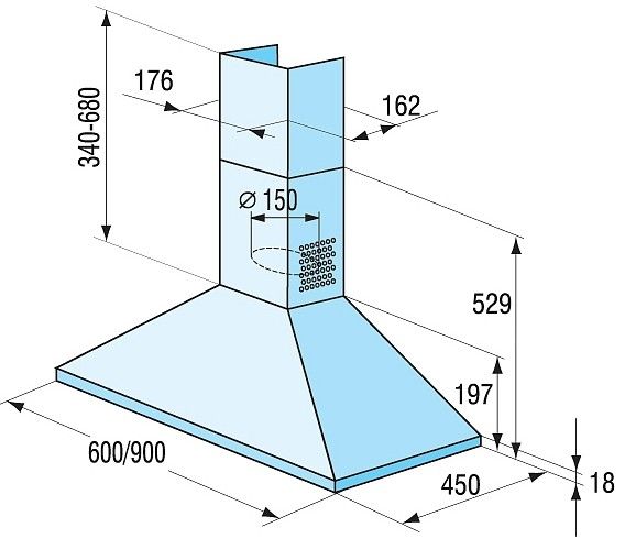 Komínový odsavač se 3 rychlostmi výkonu, zpětnou klapkou a možností recirkulace. Výkon odsavače 395 m3/h.