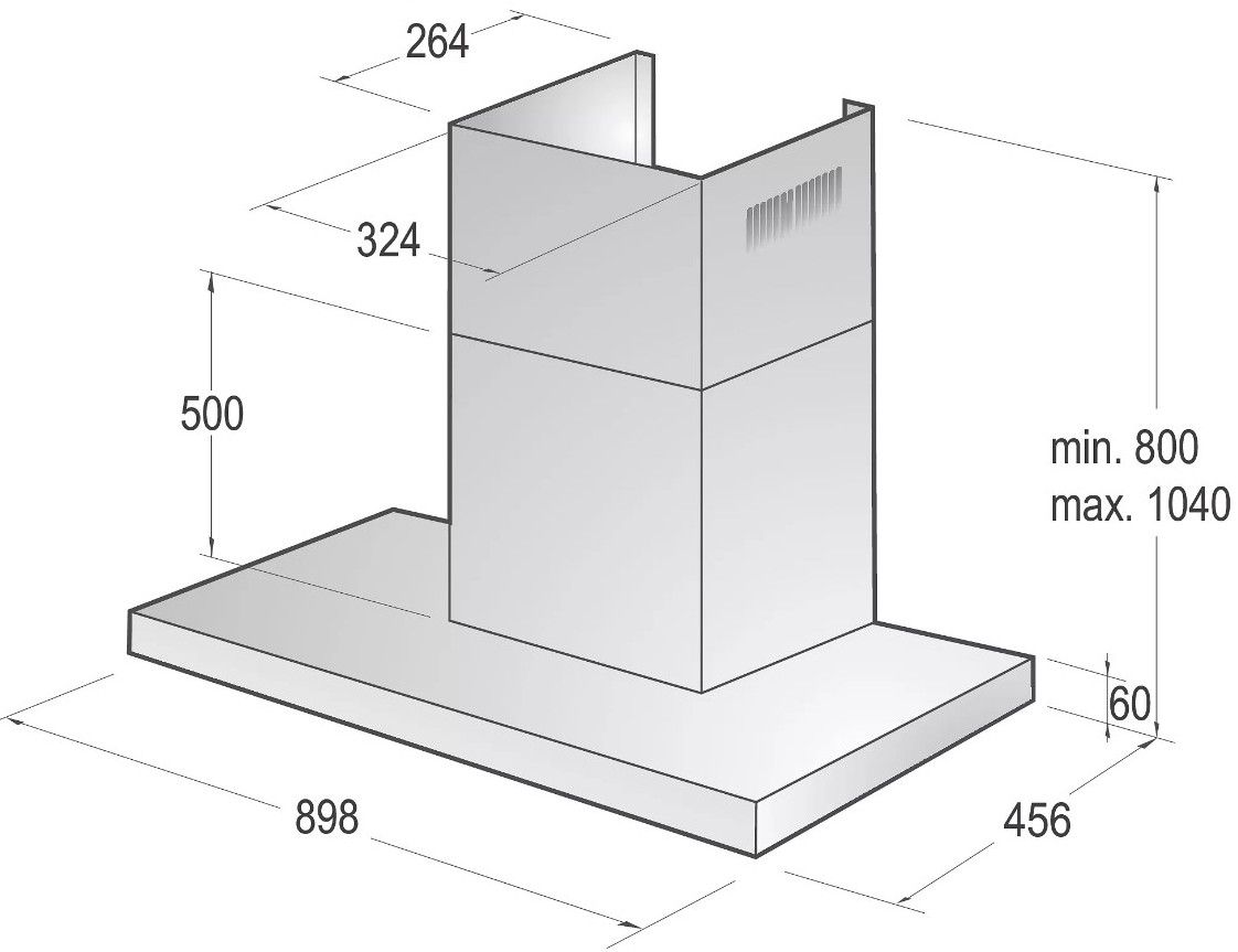 Komínový odsavač se 3 rychlostmi výkonu, zpětnou klapkou a možností recirkulace. Výkon odsavače 645 m3/h.