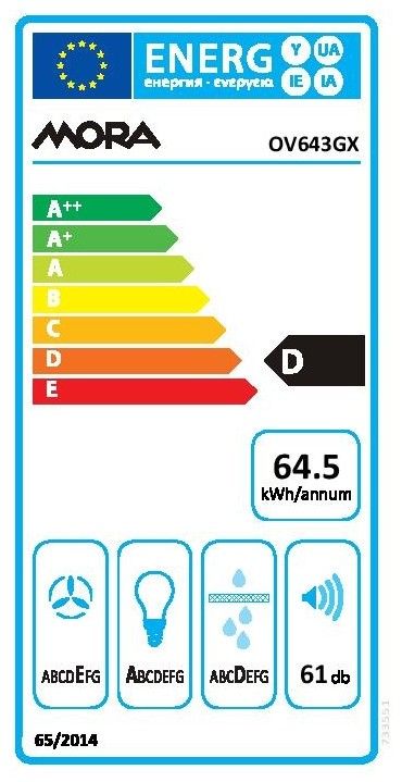 Roční spotřeba el. energie: 64,5 kWh/rok