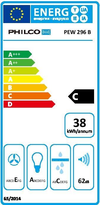 Komínový odsavač Philco PEW 296 B, barva černá, tlačítkové ovládání, třída energetické účinnosti C