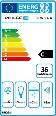 Komínový odsavač Philco PEW 306 A, provedení nerez s tlačítkovým ovládáním a LED osvětlením, třída energetické účinnosti C