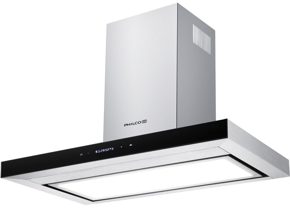Komínový odsavač PEW 729 TP v šířce 90 cm, provedením nerez s černým panelem, třídou energetické účinnosti B, senzorovým ovládáním a LED displejem