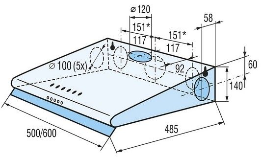 Podvěsný odsavač v šířce 50 cm v nerezovém provedení je určen pro instalaci pod skříňku, ale může být nainstalován i bez ní. Díky 6 odtahům přes zeď a možnosti recirkulace je ideálním řešením do panelákových kuchyní. 3 rychlostní tlačítkové ovládání s výkonem až 178 m3 / h a hlučností 63 dB spolehlivě odstraní nepříjemné pachy a mastnotu. LED osvětlení je samozřejmostí. Odsavač je vybaven přední skleněnou náběhovou lištou, která pomáhá zadržet páru. Hliníkové filtry proti mastnotě můžete mýt v myčce a při dokoupení uhlíkových filtrů lze odsavač provozovat i na recirkulaci.