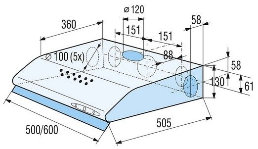 Podstavný odsavač pod skříňku má 7 odtahů, 3 rychlosti výkonu a zpětnou klapku. Vhodný i do panelových bytů. Výkon odsavače 183 m3/h.