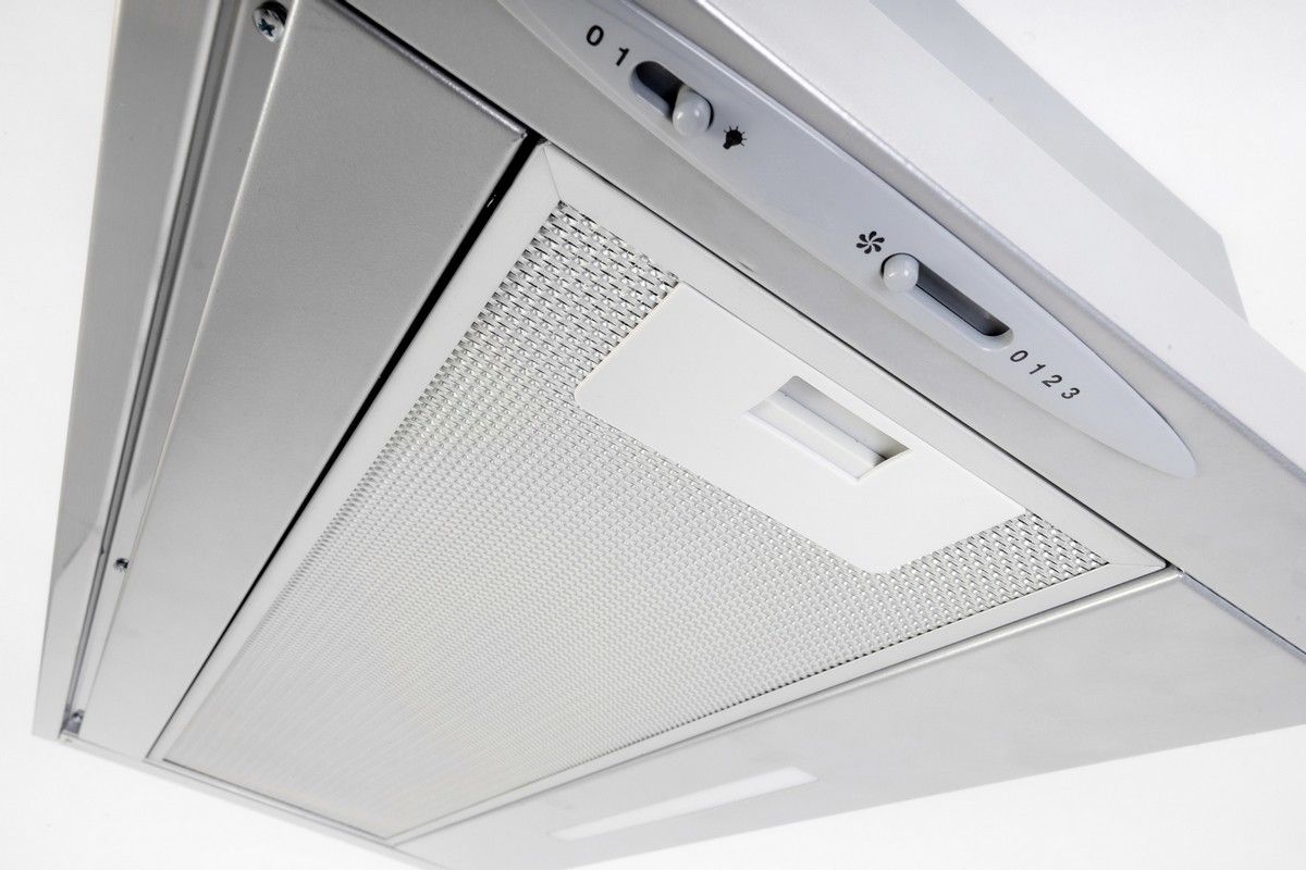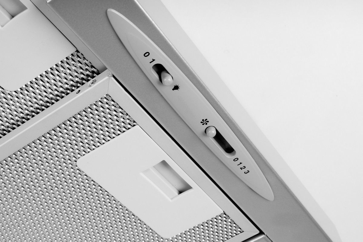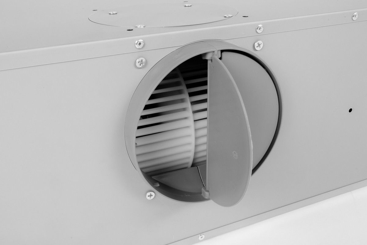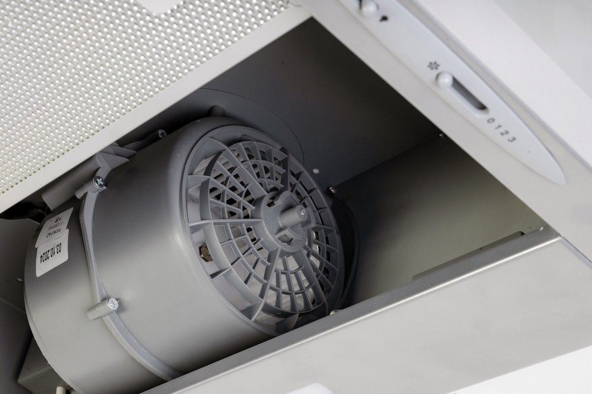 Vestavný, výsuvný odsavač se 3 rychlostmi výkonu a možností recirkulace. Výkon odsavače 338 m³/h.