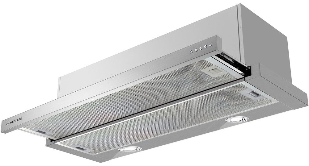 Vestavný, výsuvný odsavač se 4 rychlostmi výkonu včetně boosteru, tlačítkovým ovládáním a možností odtahu i recirkulace. Výkon odsavače 620 m3/h.