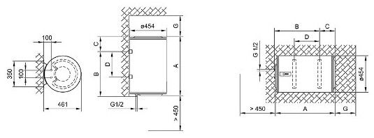 Odsazení horního okraje od stropu/stěny (G): 360 mm