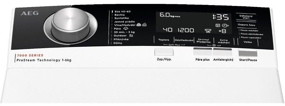 Pračka s vrchním plněním s max. kapacitou 6 kg.