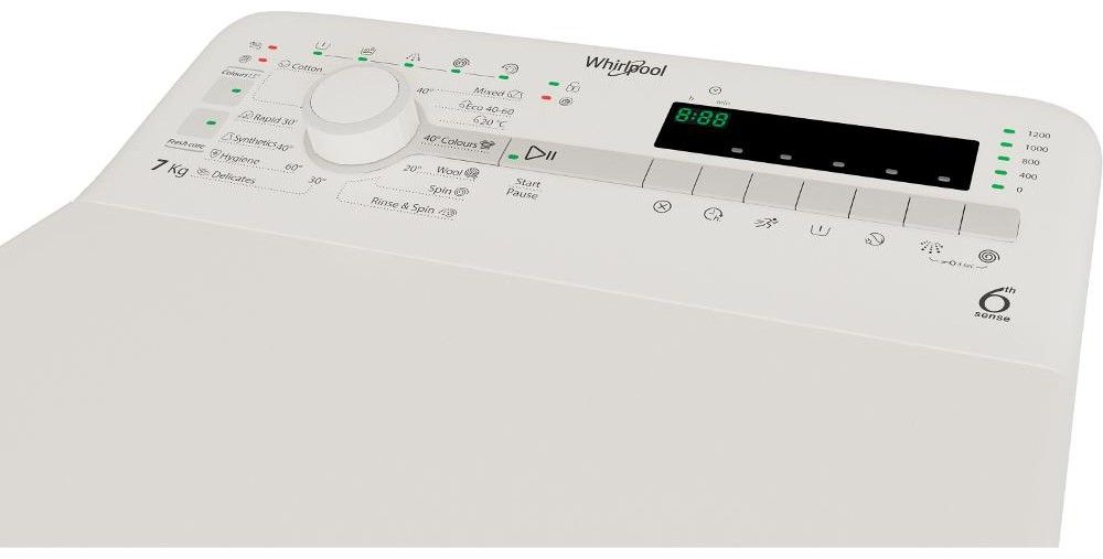 Vrchem plněná pračka Whirlpool EELT 7120EU v energetické třídě E se spotřebou 78 kWh/100 cyklů vypere až 7 kg prádla s možností nastavení odstředění na 1 200 ot./min. Kvalitní motor zajistí tichý, spolehlivý a dlouhodobý chod s hlučností 78 dB. Díky rozměrům 90 × 40 × 60 cm se pračka stane stylovým pomocníkem i v menších domácnostech. Velké množství pracích programů se postará o šetrné vyčištění všech druhů tkanin.