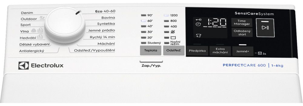 - Funkce: výběr teploty, výběr otáček, předpírka, pouze máchání, Soft Plus, odložený start, Time Manager, start/pauza