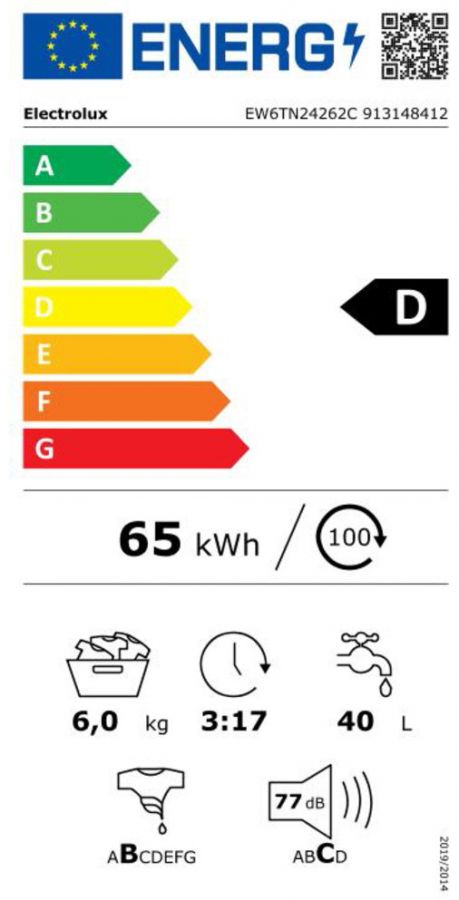 Pračka s vrchním plněním s max. kapacitou 6 kg a energetickou třídou D.