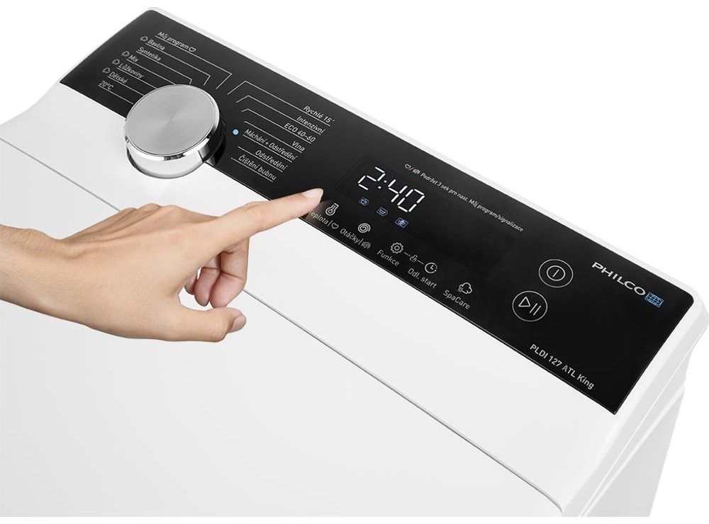 Vrchem plněná parní pračka Philco PLDI 127 ATL King v energetické třídě A. Můj program, usnadňuje obsluhu Vámi vybraného nejpoužívanějšího programu. Invertorový motor se zárukou 10 let představuje úsporný a tišší provoz s dlouhou životností.
