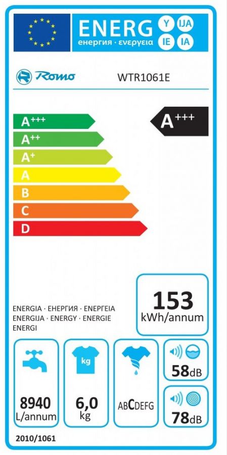 Pračka s vrchním plněním s max. kapacitou 6 kg a energetickou třídou A+++.