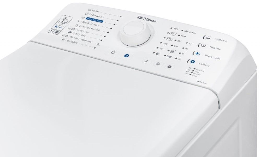 Šířka spotřebiče je 40 cm. Dosahuje maximální otáčky odstřeďování 1200 ot./min. Je ideální volbou pro menší rodiny s kapacitou bubnu pro praní 6 kg prádla.