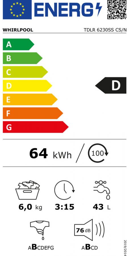 Whirlpool TDLR 6230SS CS/N je vrchem plněná pračka s energetickou třídou D