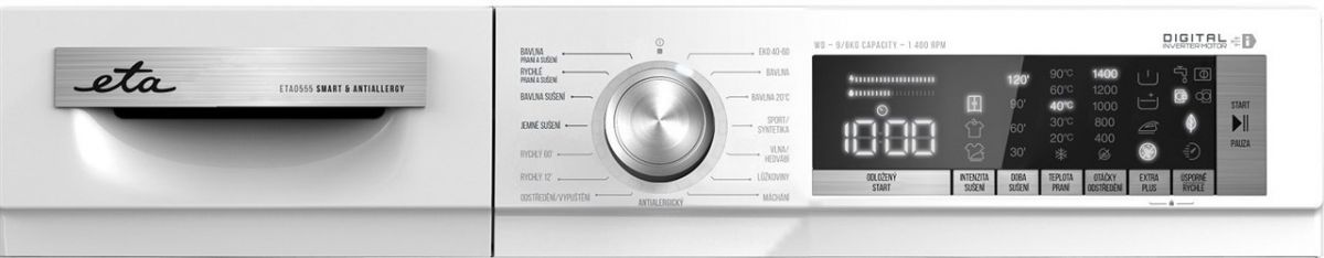 Pračka se sušičkou ETA 055590000 vám výrazně usnadní život – zatímco prádlo zůstane dlouho jako nové, potřebný čas, prostor a úsilí se smrskne na minimum. Díky špičkovému digitálnímu invertorovému motoru s dlouhou životností a nejmodernějším technologiím totiž prádlo nejen perfektně vypere, ale rovnou i vysuší.