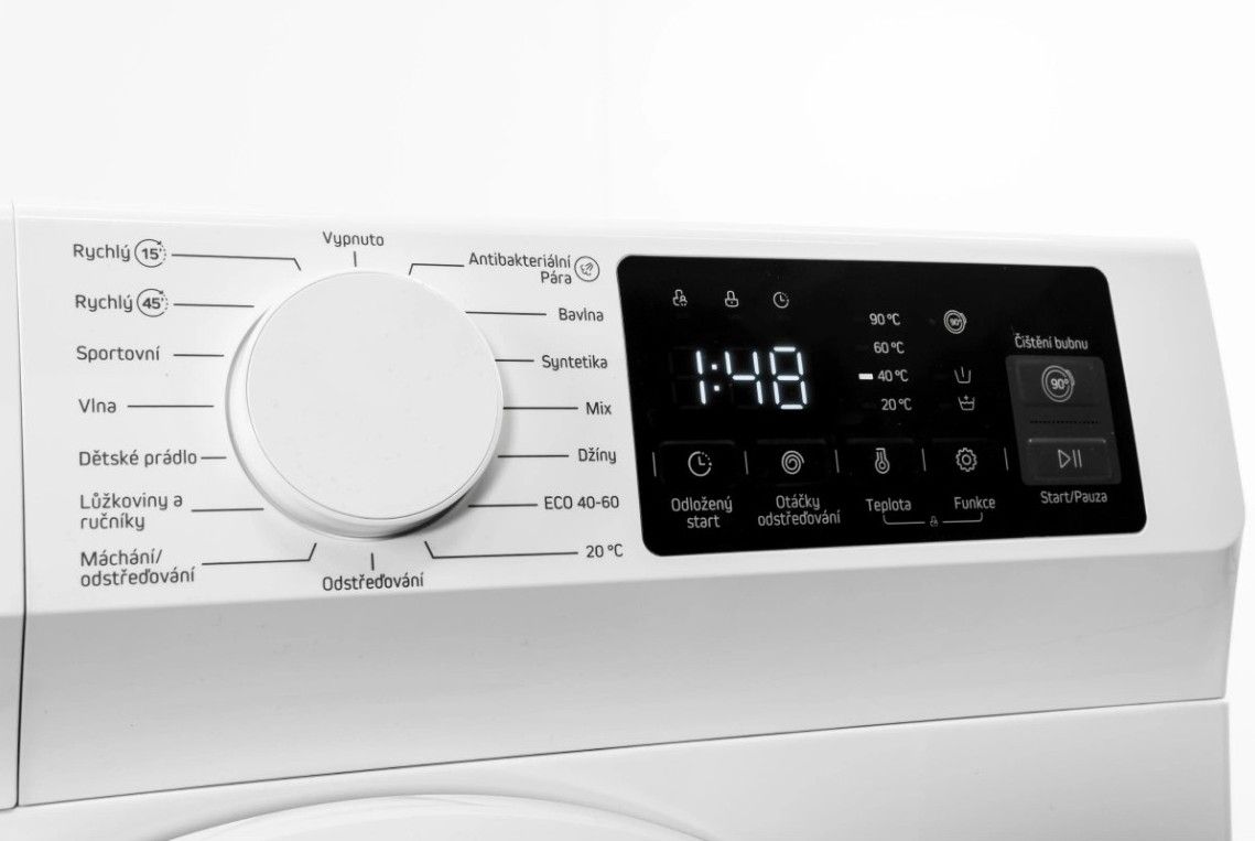 - Funkce: Předpírka, Přidané máchání, Čištění bubnu, Dětský zámek