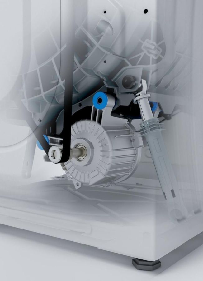 Výkonný bez uhlíkový motor eliminuje mechanické napětí, tření a opotřebení. Účinnější provoz, úspory energie jsou vyšší a proces praní podstatně tišší. Navíc s delší životností.