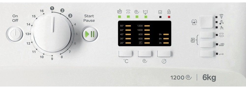 Pračka s předním plněním s max. kapacitou 6 kg a energetickou třídou F.