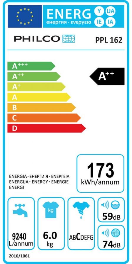 Pračka s předním plněním s max. kapacitou 6 kg a energetickou třídou A++.