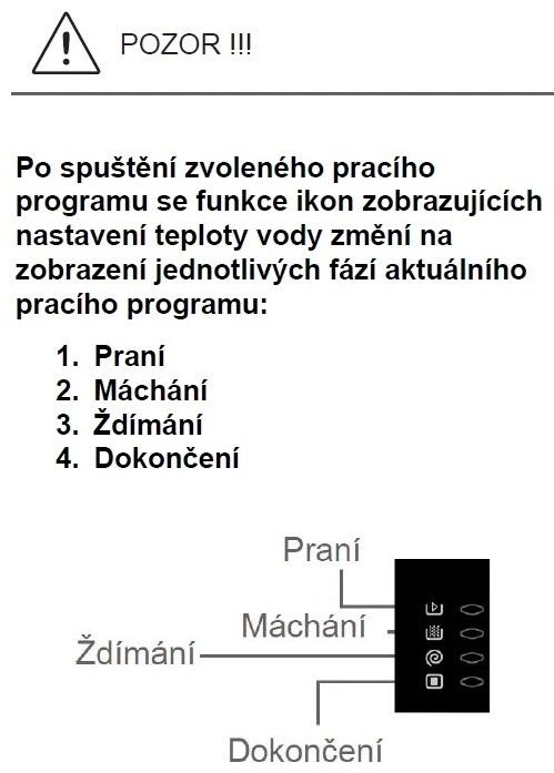 Bezpečnostní funkce pračky: Dětský zámek, Zámek dveří, Zabezpečení proti přetečení, Zabezpečení proti úniku vody