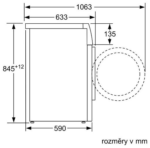 Hloubka při otevřených dvířkách: 106,3 cm