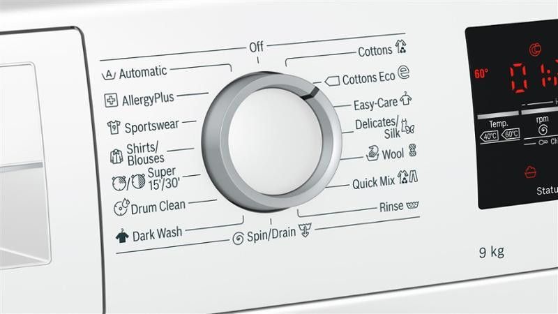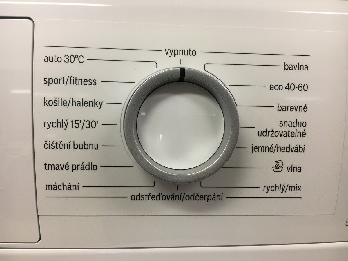 - Speciální programy: čištění bubnu s funkcí připomenutí, tmavé prádlo, košile/halenky, odstředění/odčerpání, rychlý/mix, sport/fitness, máchání, super 15'/30', automatický program pro jemné prádlo
