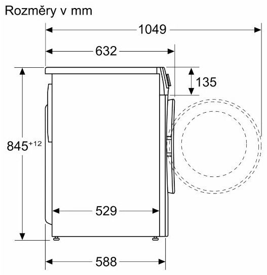 Hloubka s otevřenými dvířky 90 stupňů: 104,9 cm