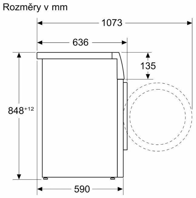 Pračka s předním plněním s max. kapacitou 9 kg.