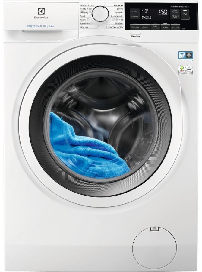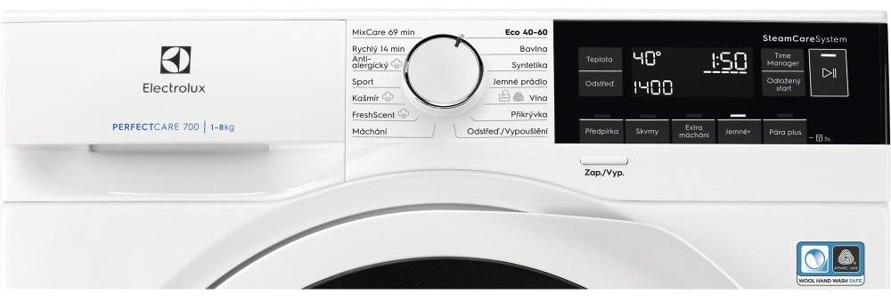 - Prací programy: Eco 40-60, bavlna, syntetika, jemné prádlo, vlna, přikrývka, odstřeď./vypouštění, máchání , Steam FreshScent, Steam, Cashmere, sport, antialergický program s párou, rychlý 14 minut, MixCare, 69min