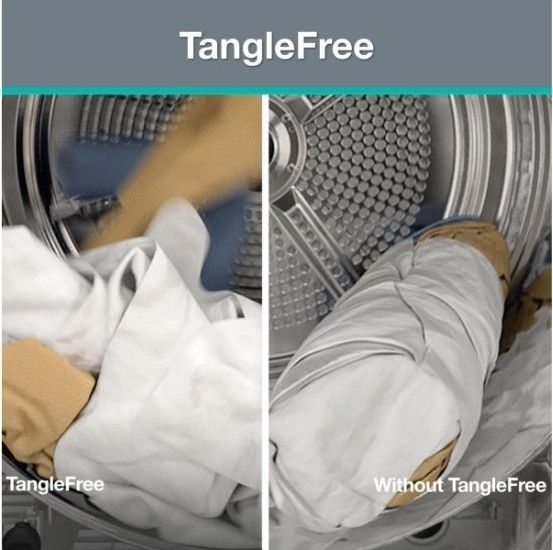 Funkce TangleFree pomáhá udržet prádlo rozložené a zabraňuje jeho zamotání, zejména u prostěradel a větších kusů. Inteligentní senzor rozpozná vznikající zamotání a sušička jemně upraví směr otáčení bubnu, aby náplň uvolnila. Prádlo se díky tomu suší rovnoměrněji, je lépe chráněné a méně se mačká. Výsledkem je hladší prádlo bez nepříjemných překvapení.