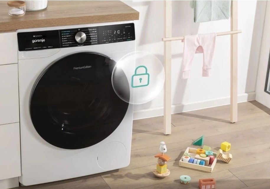 Během praní zůstávají dvířka zamčená, pojistka zabrání je otevřít i tomu nejzvídavějšímu dítěti. Pro větší ochranu lze ovládací panel také uzamknout stisknutím speciální kombinace kláves, což znemožní nechtěnou změnu nastavení.