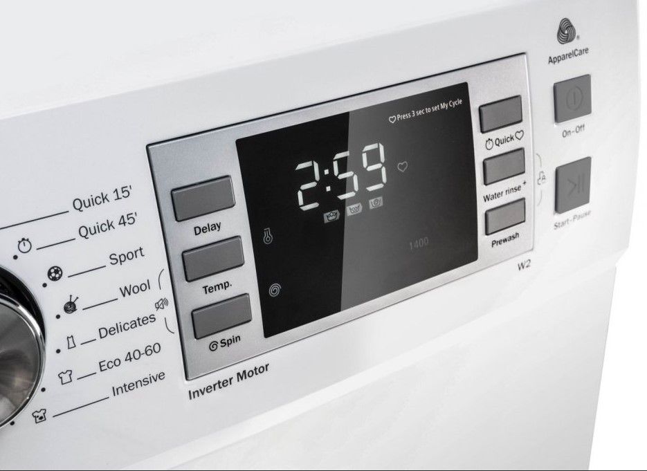 - Programy: Můj program, Bavlna, Syntetika, Hygiena, Džíny, Mix, 20 °C, Máchání a odstředění, Odstředění, Intenzivní, ECO 40-60, Jemné, Vlna, Sport, Rychlý 45 min., Rychlý 15 min.