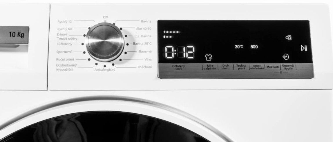 - Výběr úsporného nebo rychlého režimu praní a možnost nastavení míry zašpinění a druhu skvrn