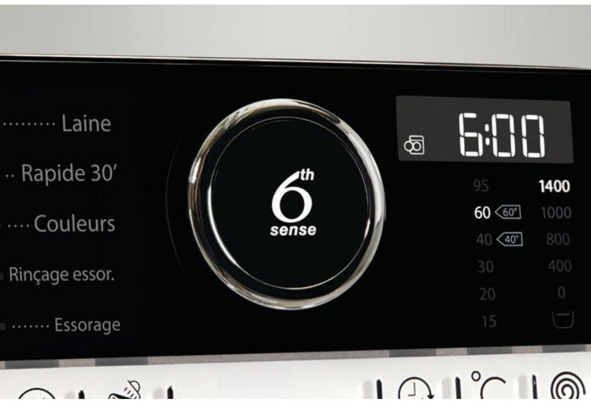 Inteligentní senzory analyzují zatížení bubnu náplní prádla (objem ,ale i savost náplně) a 6. SMYSL podle měření senzorů a typu programu upraví parametry praní, aby se ušetřilo více vody, energie a času a současně neomezila efektivita praní. Tím se sníží spotřeba vody, energie a času až o 50%!